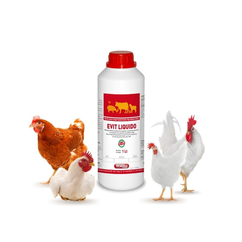 EVIT LIQUIDO is a complementary liquid feed to be added to drinking water at the rate of 100ml/100L to supplement the diet with vitamin E and selenium.