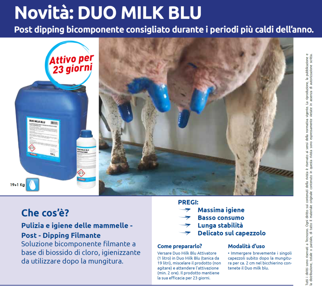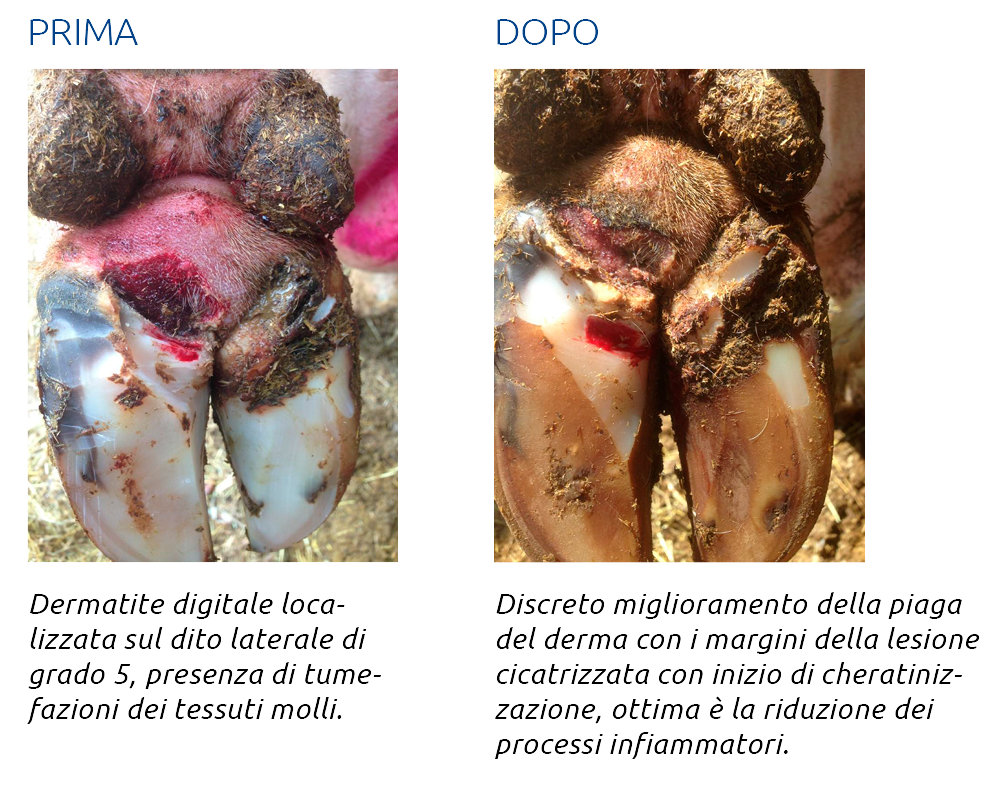 Diventa essenziale l’utilizzo di un valido prodotto, sicuro e rispettoso della cute. È necessario, inoltre, garantirsi dell’integrità della cute e dello zoccolo da trattare, assicurandosi che il piede venga coperto interamente. Solo in questo modo si può essere sicuri dell’azione topica della soluzione! Una volta trattati, dovrebbe essere assicurato agli zoccoli un tempo di asciugatura di circa 20 minuti all’uscita dalla sala di mungitura.