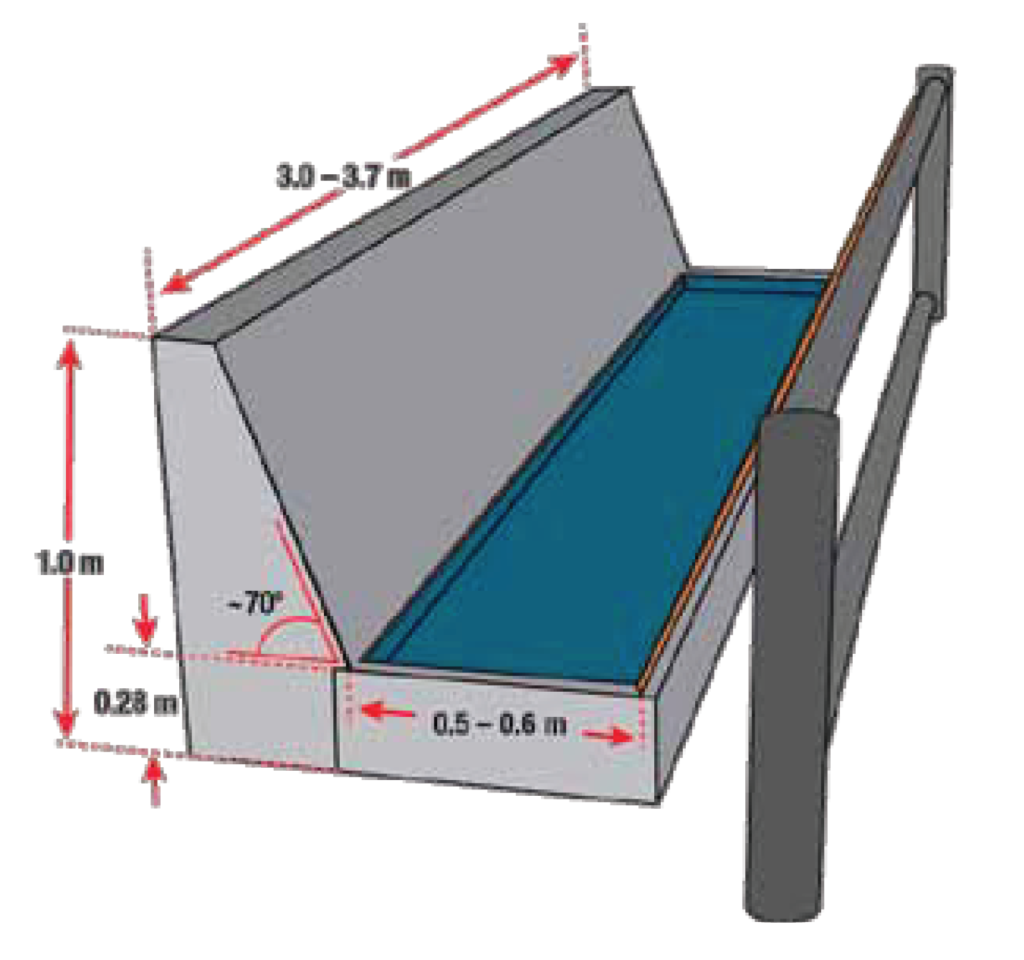 Una vasca costruita adeguatamente dovrebbe prevedere un fondo comodo al calpestio, privo di irregolarità e possibilmente dotata di un sistema che la faccia riempire e scaricare velocemente.