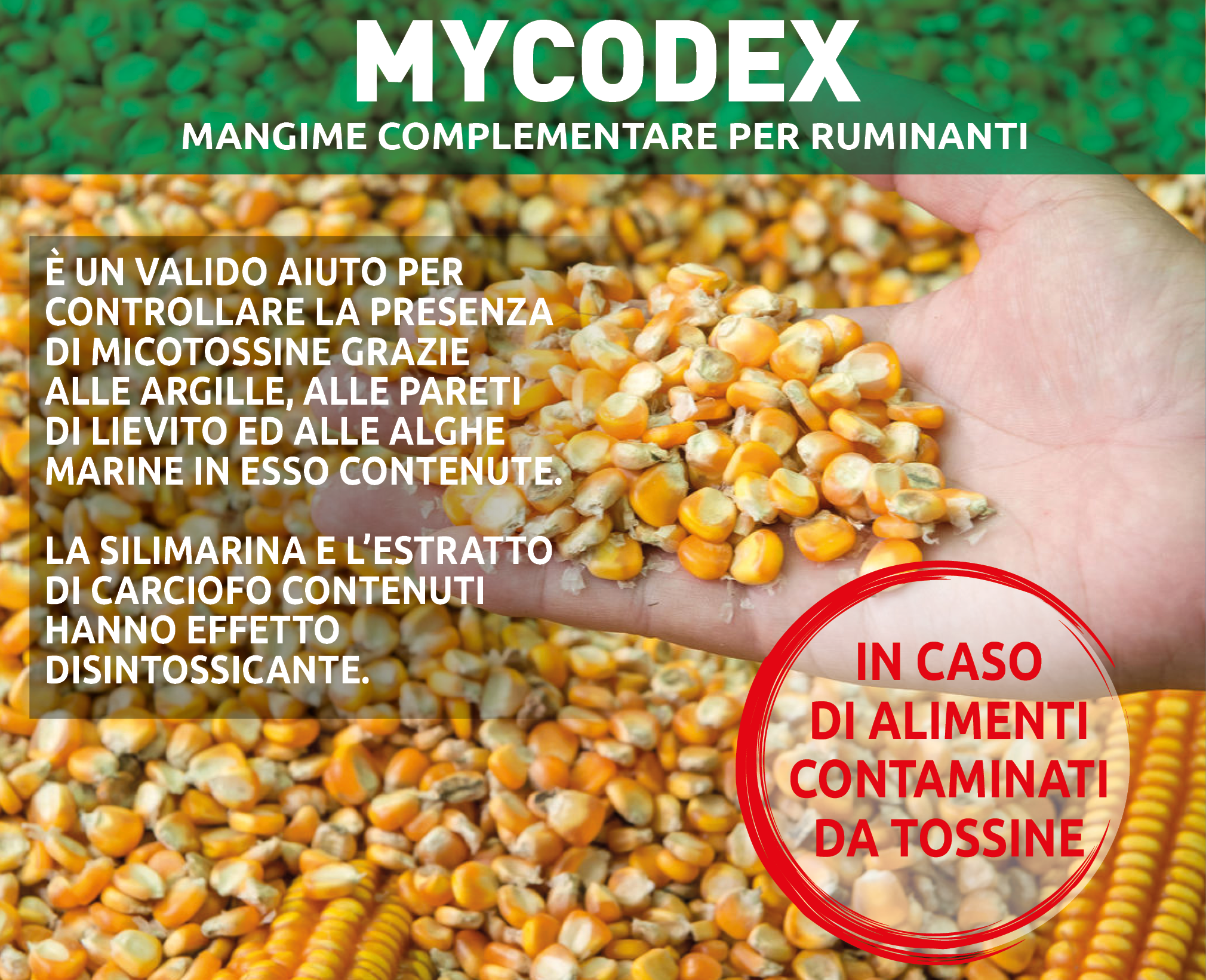 Nei casi di rischio di presenza di micotossine nelle derrate alimentari o nella razione o in presenza di sintomi manifesti nella mandria, risulta necessario integrare la dieta con specifiche molecole in grado di detossificare le micotossine impedendone quindi l’assorbimento e la diffusione nel torrente circolatorio.