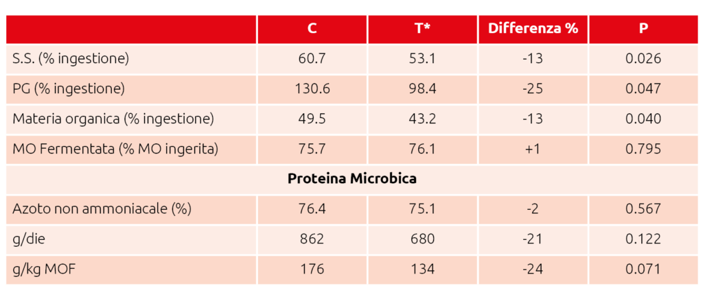 Tabella 2 – Passaggio di nutrienti all’intestino di vacche alimentate con frumento contaminato da tossine del Fusarium spp. 11.