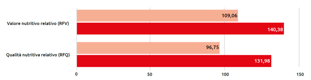 La qualità nutritiva relativa (RFQ) è un indice più accurato del precedente, che tiene conto anche del totale dei nutrienti contenuti nel foraggio e della loro digeribilità (ad esempio, oltre a basarsi su NDF, tiene conto di quanto è digeribile), provvedendo a una stima più accurata del soddisfacimento delle esigenze nutritive dell’animale.