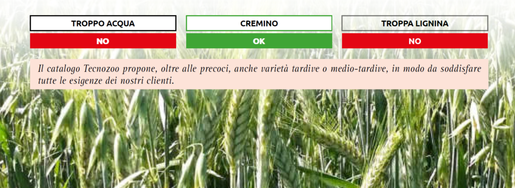 Il consiglio dei tecnici Tecnozoo è quindi quello di focalizzare l’attenzione sull’utilizzo di miscugli di graminacee o cereali in purezza (anche in associazione con i loietti).