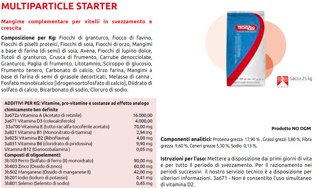 Pasta decornificante specifica per vitelli, agnelli e capretti.