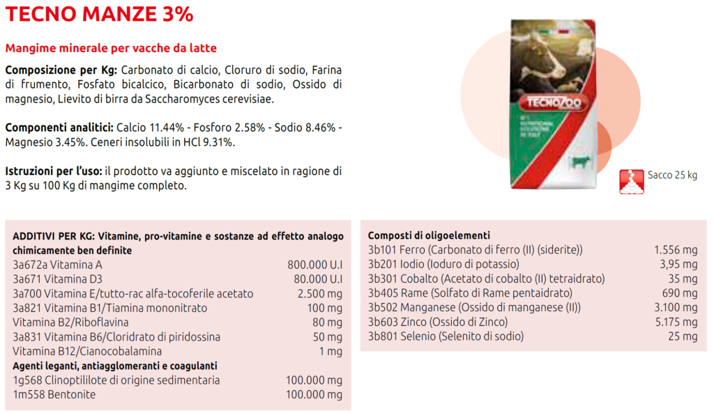 Mangime complementare minerale per vacche da latte e bufale da latte