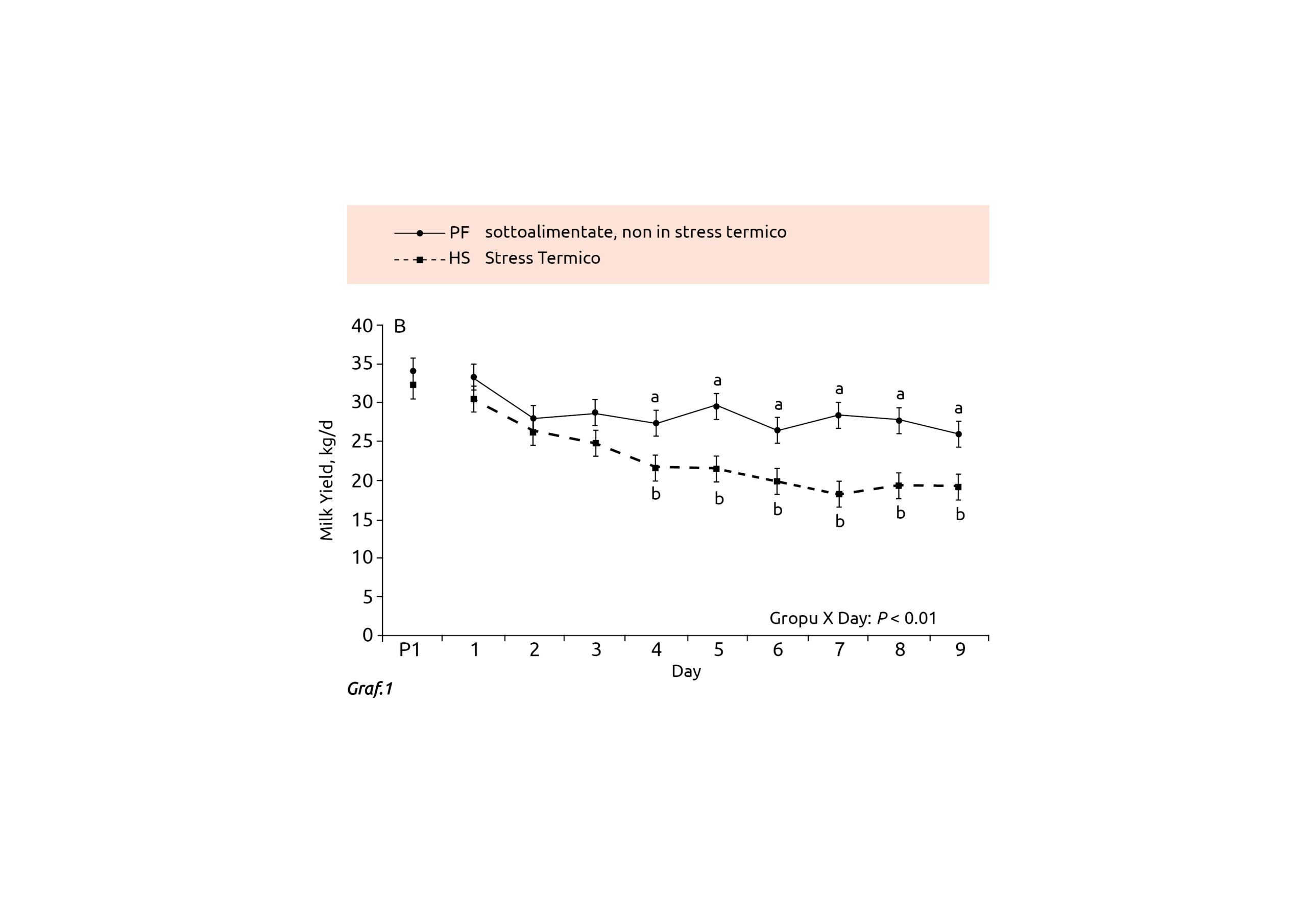 Come dimostrato da studi di Rhoads et al., 2009, Wheelock et al., 2010 e Baumgard et al., 2012  durante lo stress termico nelle bovine da latte, le vacche perdono molto più latte (circa il 45%) rispetto a vacche non in stress termico ma sottoalimentate, con gli stessi kg di sostanza secca (circa il 19%). Di conseguenza la minore ingestione di ss è solo una parte, circa il 50%, delle cause di meno produzione di latte.