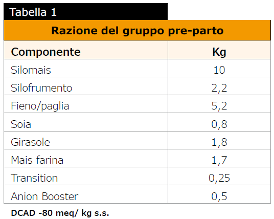 “La collaborazione con la famiglia Basso – spiega Mantovani – è iniziata da circa un anno e subito gli allevatori ci hanno posto obiettivi precisi con la richiesta di migliorare le prestazioni nella fase di transizione. Un traguardo impegnativo, che ci ha visti intervenire inserendo nella razione un prodotto specifico distribuito in esclusiva da Tecnozoo, capace di fare la differenza. Si tratta di Anion Booster, un integratore anionico di ultima generazione, caratterizzato da un elevato contenuto di sostanza secca, che, oltre a garantire una notevole shelflife, assicura l’ottima palatabilità della razione nelle 24 ore, questo perché, al contrario di altri prodotti simili sul mercato, non libera ammonio quando bagnato. Un aspetto essenziale visto che l’ammonio ha un effetto negativo sull’assorbimento del magnesio, macroelemento fondamentale per la gestione del metabolismo del calcio”.